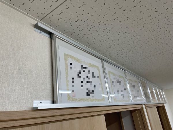もともと可変式の金具形状ですので、横幅35cmから42cmくらいまでの幅の看板を取付けられます。